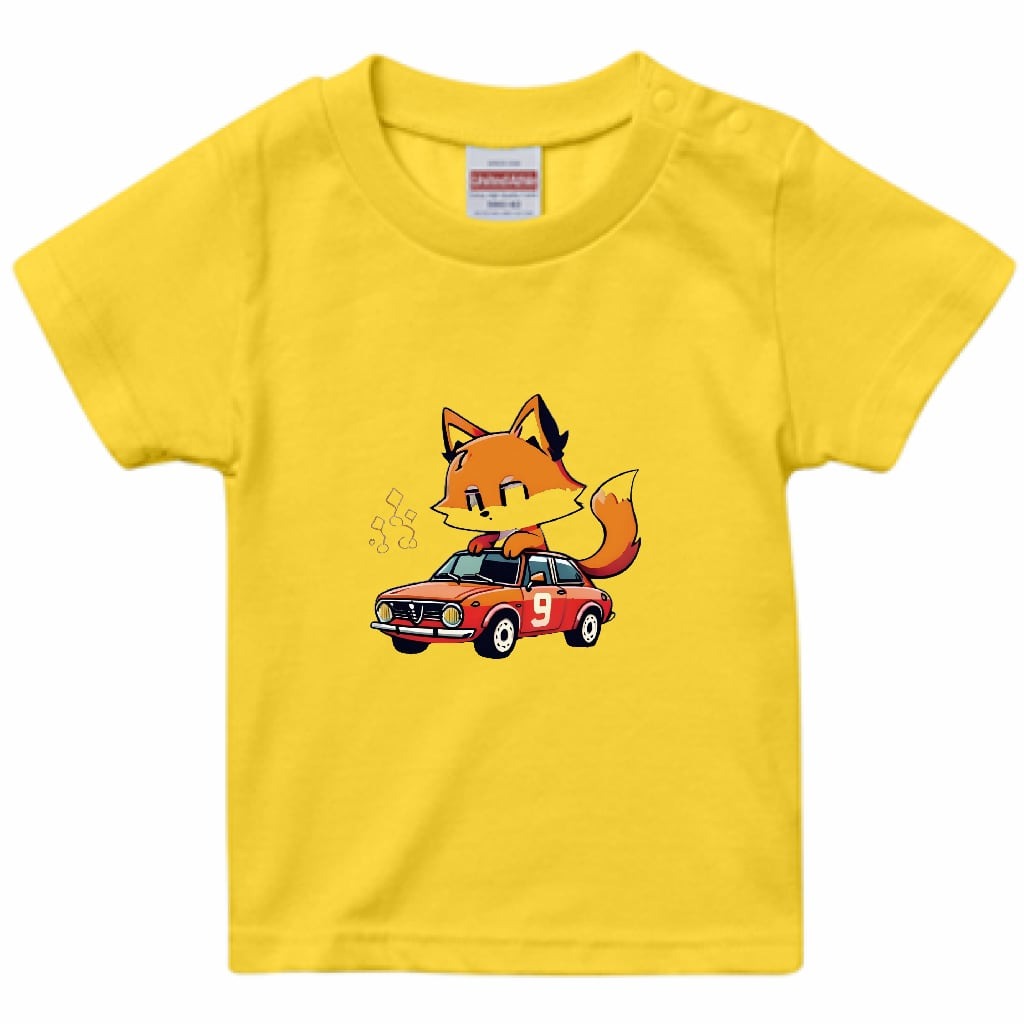 オリジナルキャラクター『狐GT(きつねジーティー)』を大胆にプリントした、特別感あふれるキッズTシャツです🚗💨